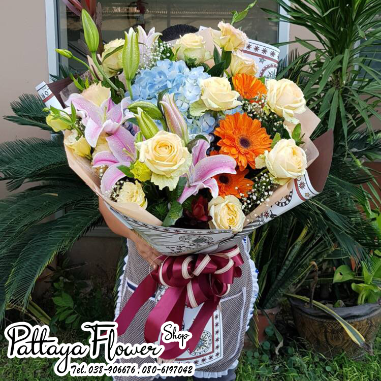 • สินค้าสามารถจัดคล้ายคลึงตามรูปภาพที่แสดง หรือแตกต่างเล็กน้อยขึ้นอยู่กับดอกไม้ในแต่ฤดูกาล